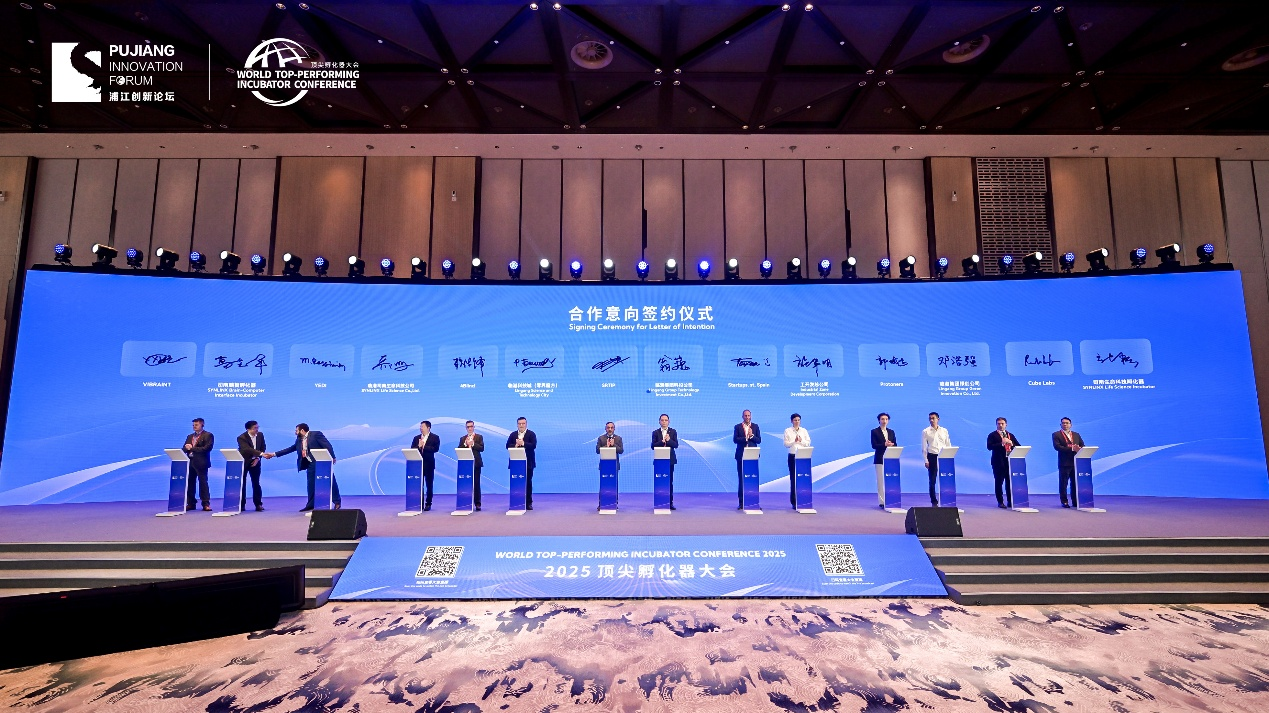 2025“顶孵”大会开幕式期间,举行多项成果发布和项目签约,展示了全球科技创新孵化合作“大气候”“微循环”的欣欣向荣。
